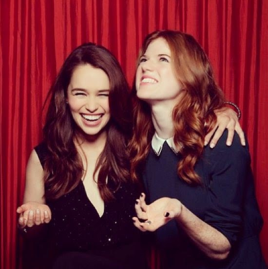 3. It’s always a surprise to see actress Emilia Clark who portrays Daenerys Targaryen in the show with her natural dark brunette hair. Here she cracks a smile with fellow cast member and lover/hater of Jon Snow Rose Leslie who plays Ygritte in the show.